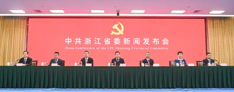 今天上午,中共浙江省委召开新闻发布会。省委副秘书长、改革办常务副主任朱卫江,省委副秘书长、政研室主任、财办主任汪全立,省发展改革委党组书记、主任杜旭亮,省科技厅党组书记佟桂莉,省委农办主任、省农业农村厅党组书记王通林,省商务厅党组书记、厅长周向军出席发布会,介绍和解读省委十五届八次全会精神并回答记者提问。