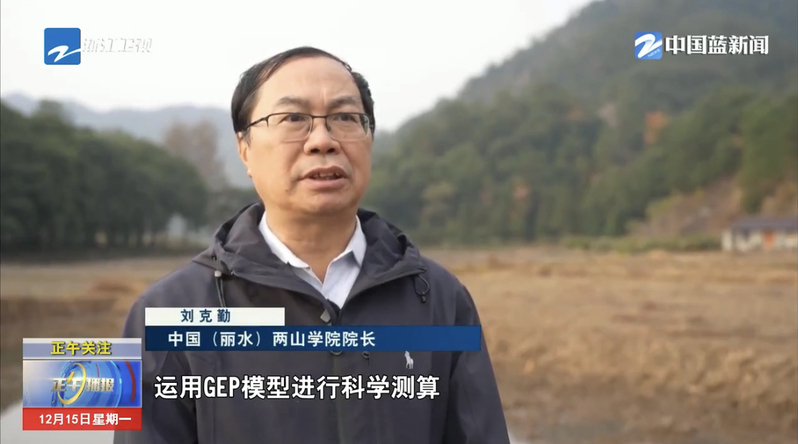 12月15日,浙江卫视正午关注播报了《废弃水电站变身网红村咖 景宁生态价值转化再升级》的消息,刘克勤院长接受采访,他表示,该项目通过运用GEP模型科学测算山水林田湖草的生态功能,把无形的生态功能转化为可量化、可运营的经济价值。