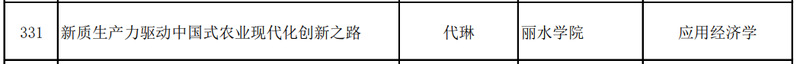 近日,2025年度国家哲学社会科学基金后期资助项目立项结果正式揭晓,我院代琳副研究员、生态学博士、中国(丽水)两山研究院副院长,申报的《新质生产力驱动中国式农业现代化创新之路》成功获批,为本次立项中丽水学院唯一入选项目,彰显学院在哲学社会科学领域科研创新的突出成效与学科发展硬实力。