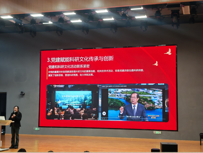 比赛中,叶小青副书记以支部建设实践为蓝本,从制度建设、团队凝聚、科研攻关、人才培养四大维度展开汇报。在党建引领下,支部制定并完善了党政联席会议、经费管理、智库奖励等一系列规章制度,为发展夯实制度根基;通过引进美国科学院院士欧阳志云团队、浙工大徐维祥教授等高端智力,组建本土研究小组,形成“专家指导+本土执行”的科研梯队,深度对接丽水市政府、纳爱斯集团等政企需求,助力缙云大洋山生态产品方案获25.2亿国债资金支持,推动丽水成功成为国家生态产品价值实现试点城市;聚焦科研攻坚,支部将党小组建在团队上,设立党员先锋岗,累计报送决策咨询成果122篇次,多项课题获省社科规划立项,《关于建设“浙南闽北协同发展示范区”》获正国级领导批示,牵头编制2项国家级团体标准及多部行业、地方标准,为全国生态产品价值实现提供“丽水样本”;在人才培养方面,支部设立博士后工作站,开设“两山教育”通识课与慕课西行项目,面向全国开展“两山”干部培训,构建起多层次、广覆盖的生态文明育人体系。