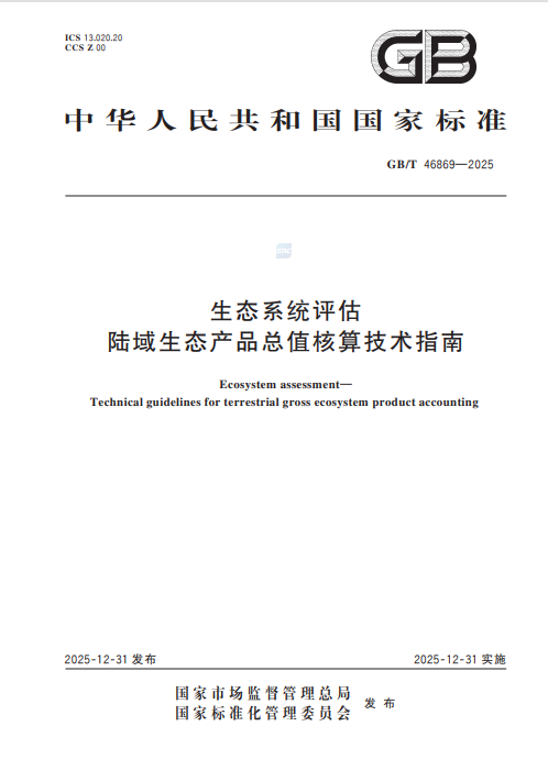 该标准遵循GB/T 1.1—2020规范起草,是我国生态产品价值核算领域首个国家标准。其发布填补了国内陆域GEP核算标准化空白,标志着我国生态效益纳入经济社会评价体系迈入标准化新阶段,为全国相关核算提供了统一权威的“度量衡”。