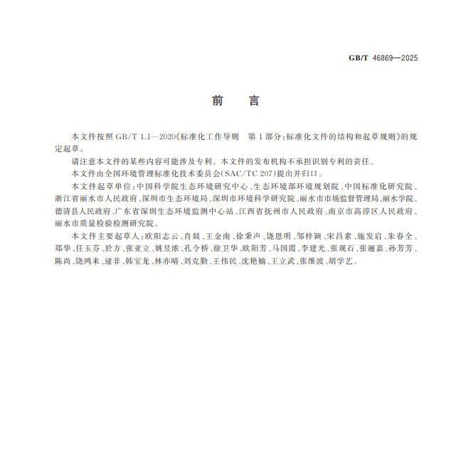 岁末启新程,标准领开局。2025年12月31日,由中国(丽水)两山学院院长欧阳志云主持、执行院长刘克勤等人参与制订的《生态系统评估 陆域生态产品总值核算技术指南》国家标准(GB/T 46869—2025)正式发布。这一成果为我国生态产品价值实现领域注入新动能,更让丽水学院在生态价值核算新赛道斩获“开门红”,彰显其生态文明建设领域的科研实力与行业引领力。