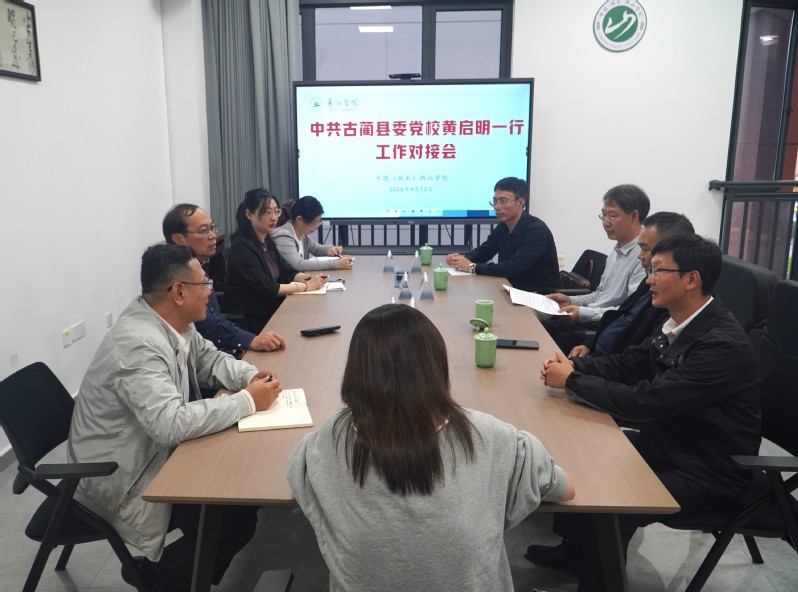 本次调研由古蔺县委组织部副部长、县委党校常务副校长黄启明,青田县委党校常务副校长刘巧雄带队,古蔺县委党校教务股股长易海舰等一同参与。调研团队围绕“两山”理念考察学习、“四渡赤水”红色培训宣传推介两大核心任务,与我院相关负责人开展深入座谈。